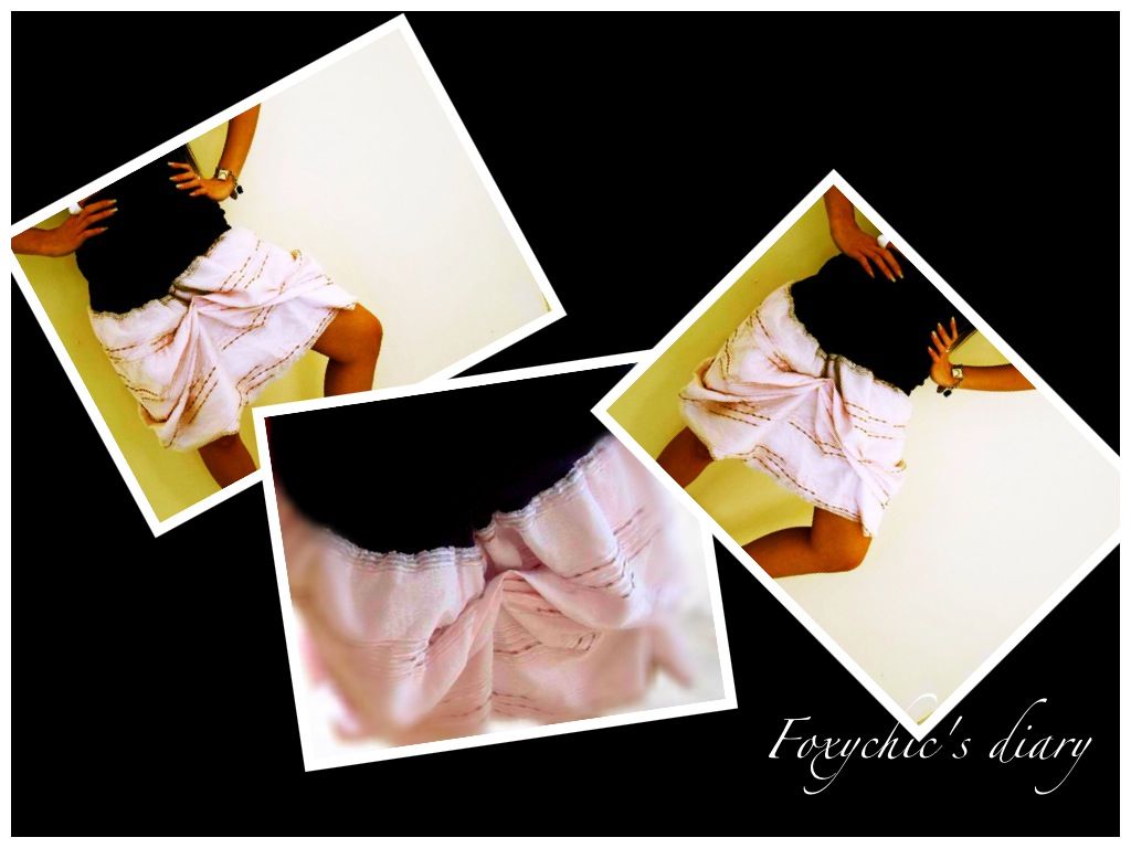 I got this one from a local designer at a pushcart in one of the malls almost 10 yrs ago! I paid around SGD90, a bit steep then… but with no regrets! It’s not like any ordinary skirt. The random tacking of the unique double layered pink Thai silk, backed with white cotton fabric underneath in and around the skirt creates more bubbly feel altogether. Give credit to the designer, whoever this is… to match pink Thai silk as the bottom to purple machine-knitted thick waist band, secured with a long black ribbon around the hip… Can wear it on waist or hip… goes well with any tank top and a pair of flip-flop – brings out a casual-chic-ness!