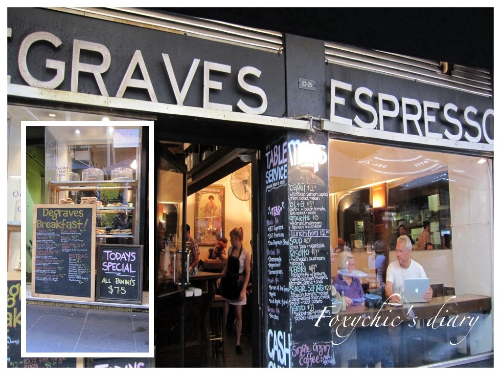 One of the many things I did not have enough or rather will not have enough-the cafes and coffees in Melbourne! There are so many of them and most of them serve great coffee! I was introduced by a coffee-lover friend to a whole new world of coffee and cafes in the short span of less than forty-eight hours. We popped into like five cafes each day, trying out ristrato, expresso and latte. There was this one particular cafe that my coffee-lover friend swears by it… Degraves Expresso, located right in the middle of degraves street. There are many cafes and good ones actually but somehow, that felt different. The barista made the difference… not just a matter of skill but passion for the coffee, the product he was selling and his work. We had to order the ristretto, not every cafe serves it and not every barista can make it and make it well.